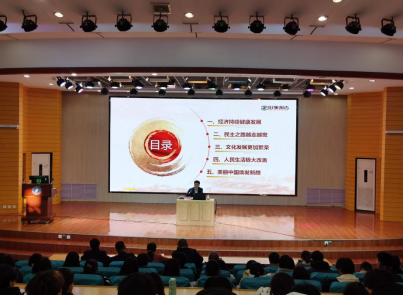 张立杰以“七十五载迎盛世,砥砺前行续华章”的主题,详细阐述了新中国成立75周年以来,我国经济持续健康发展、民主之路越走越宽、文化发展更加繁荣、人民生活极大改善、美丽中国焕发新颜等五个方面所取得的持续发展与显著成就。他通过生动的叙述与丰富的实例,引领同学们回顾光辉奋斗历程,重走来时峥嵘岁月,勉励大家不畏风吹雨淋,勇踏时代大浪,扬青春之帆,怀济世之情。