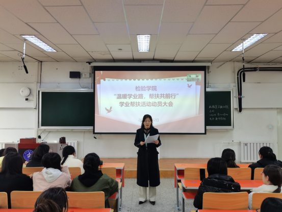 3月2日,检验学院在双怡校区教学楼20大教室举办了“温暖学业路,帮扶共前行”学业帮扶动员大会。会议由学生工作办公室主任陈媛主持,党委副书记纪文武、辅导员刘莉和300余名学生参加了动员会。