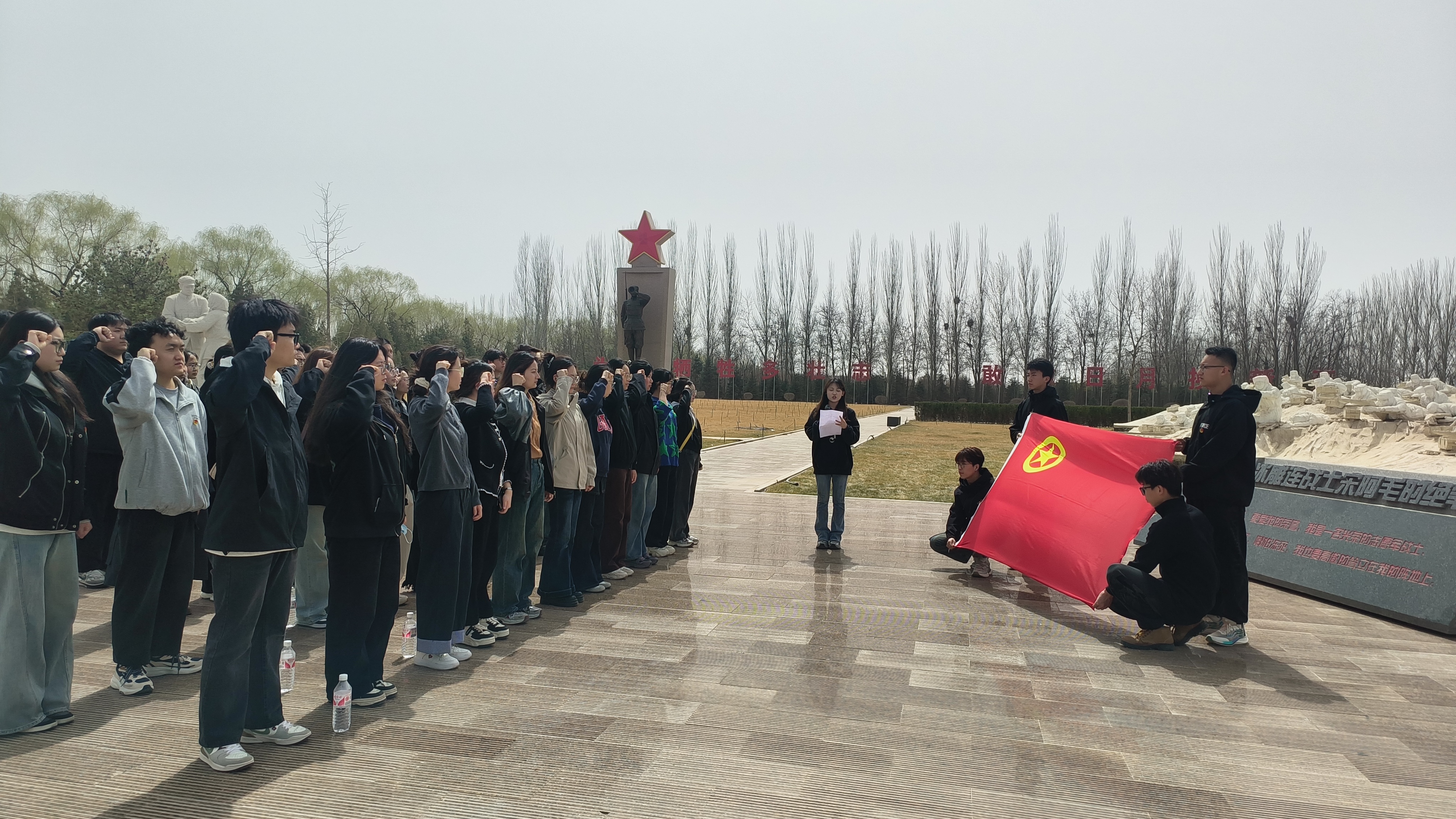 在庄严肃穆的氛围中,全体人员肃立在“冰雪雄魂”雕塑前三鞠躬,双手轻放、面色崇敬、敬献鲜花,感悟着革命精神,牢记着先烈们的丰功伟绩。在“冰雕连阵地战壕”雕塑前,全体团员面对团旗,重温入团誓词,庄严宣誓,铿锵有力的誓言回荡在陵园上空。“作为新时代医学生,我们不仅要继承先烈们的奉献精神,更要锤炼救死扶伤的专业本领。”团员代表张宇晗同学在分享感悟时如是说。