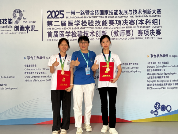 8月9日至10日,由金砖国家工商理事会中方理事会、“一带一路”暨金砖国家技能发展国际联盟等联合主办的“2025一带一路暨金砖国家技能发展与技术创新大赛之第二届医学检验技能比赛”在江西九江学院圆满落幕。本次赛事吸引了全国62所医学高校的124名选手同台竞技,我院师生凭借卓越表现脱颖而出,再添荣誉。