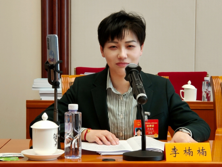 图为全国人大代表李楠楠在会议上发言。(受访者供图)