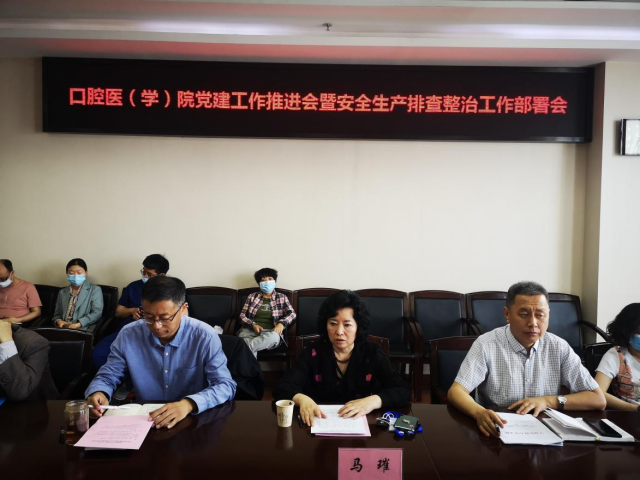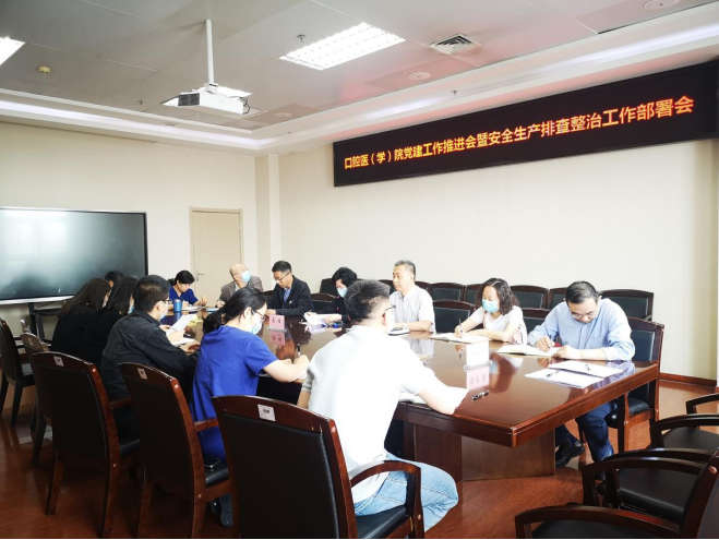 2022年5月5日口腔医(学)院召开了“党建工作推进会暨安全生产排查整治工作部署会”。总医院马璀副院长、两院领导,各党支部书记、委员,各职能部门正副主任,学系、临床科室正副主任、正副护士长、科室负责人等参加了会议,院长黄永清主持会议。