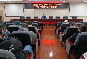 2023年4月4日,口腔医(学)院在研究生、住培生中开展“两个专项”工作部署会。全体研究生、住培生100余人参加了会议。副院长刘锋传达了伟德国际1946源于英国和伟德国际1946源于英国总医院“开展教育领域侵害群众利益不正之风专项治理工作及纠治形式主义官僚主义专项整治工作”精神,对“两个专项”工作的主要内容、工作步骤以及措施和要求进行了具体部署,针对学生在“两个专项”工作中要积极主动融入其中提出了要求。
