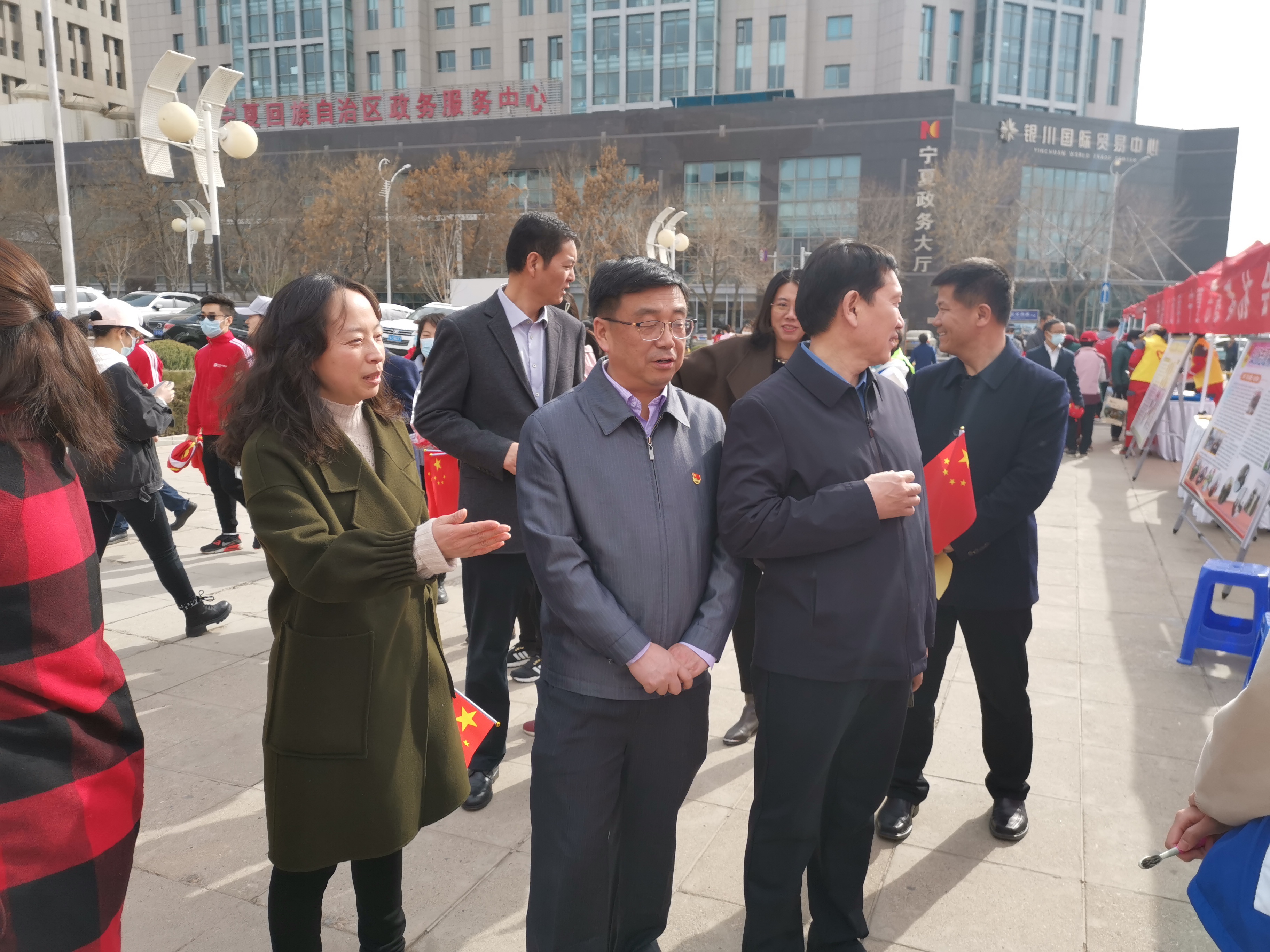 启动仪式上表彰了宁夏荣获全国全区学雷锋志愿服务活动先进集体和个人,宣读了志愿者招募令,总结了青年志愿服务工作,对2021年全区志愿服务工作进行了部署。仪式后,领导们对志愿服务获奖项目展位进行参观了解,口腔医学院的志愿者为领导们详细讲解了金奖项目“灵心慧齿 牙伢口腔保健科普儿童之家”,并观看了项目宣传视频。了解项目之后各位领导对口腔医学院学生能够将专业特长融入志愿活动的想法表示赞扬,并鼓励志愿者们继续坚持,争取服务更多人群。活动期间,志愿者们也向过路的人们进行常规口腔卫生宣教,并为前来咨询口腔相关疾病的人们答疑解惑。
