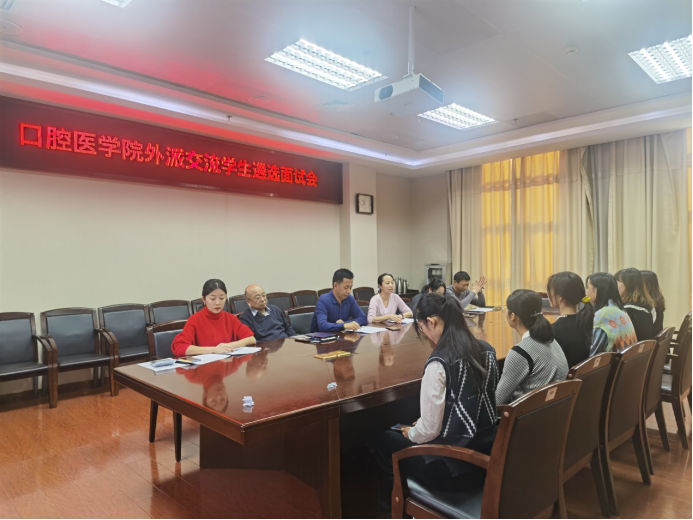 面试开始,先由评委代表向参选学生介绍《口腔医学院遴选赴联合培养大学交流学生方案》及遴选面试评分细则。六名同学按抽签顺序依次进入会议室,进行答辩,答辩过程包括5分钟PPT讲解及问答环节。最后,结合综测排名、面试成绩、日常表现,最终有4名同学争取到去华西口腔医学院、空军军医大学院学习的机会,将于近日启程奔赴新的学习旅程。