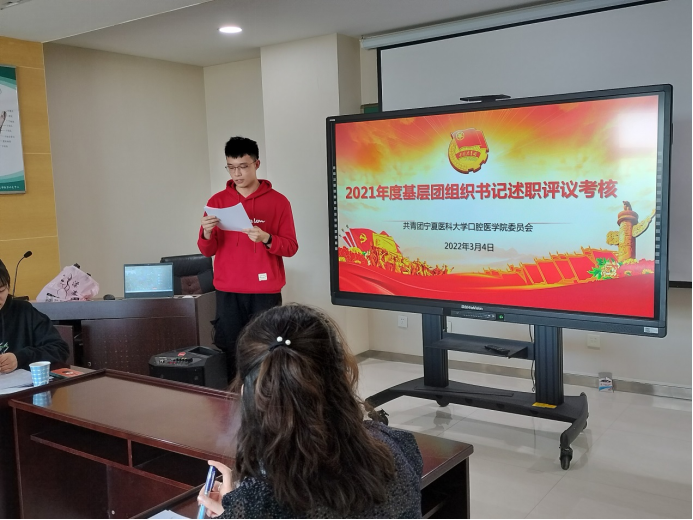 根据共青团伟德国际1946源于英国委员会《关于开展2021年度基层团组织书记述职评议考核工作的通知》文件精神,为深入贯彻落实基层团组织书记述职评议考核制度,落实全面从严治团要求,3月4日下午,口腔医学院团委召开2021年度基层团组织书记述职评议会。此次述职采取“线上+线下”相结合的形式进行,学院党委副书记王云老师、团委副书记刘莉老师、各班团支部书记、团员代表等参加本次会议。