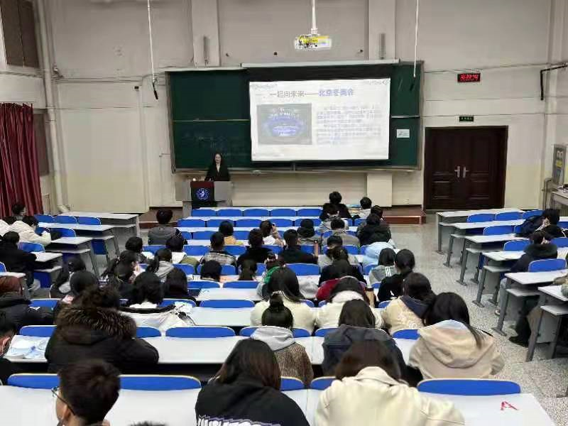在雁湖校区,王云以“学习贯彻党的十九届六中全会精神、紧跟‘最牛团队’逐梦‘星辰大海’”为主题,与2020级、2021级本科学生进行交流分享。她首先以“一起向未来——北京冬奥会”为切入点,以点带面展现我们党团结带领全国各族人民百年奋斗取得的重大成就。随后,又以“百年再起航——党的十九届六中全会”为题,与同学们一起学习党的十九届六中全会主要精神。她鼓励同学们,要认真学党史,跟党走,在“四史”学习中不断汲取经验和奋进力量,砥砺新征程,书写青春华章。最后,她强调同学们在校期间,一定要按照学校要求,扎实做好疫情防控各项相关工作,共同营造一个良好的校园氛围,尽快进入学习状态,以良好的精神姿态投入到紧张的学习中,为将来实现中华民族伟大复兴的中国梦贡献青春力量与智慧奠定坚实的基础。