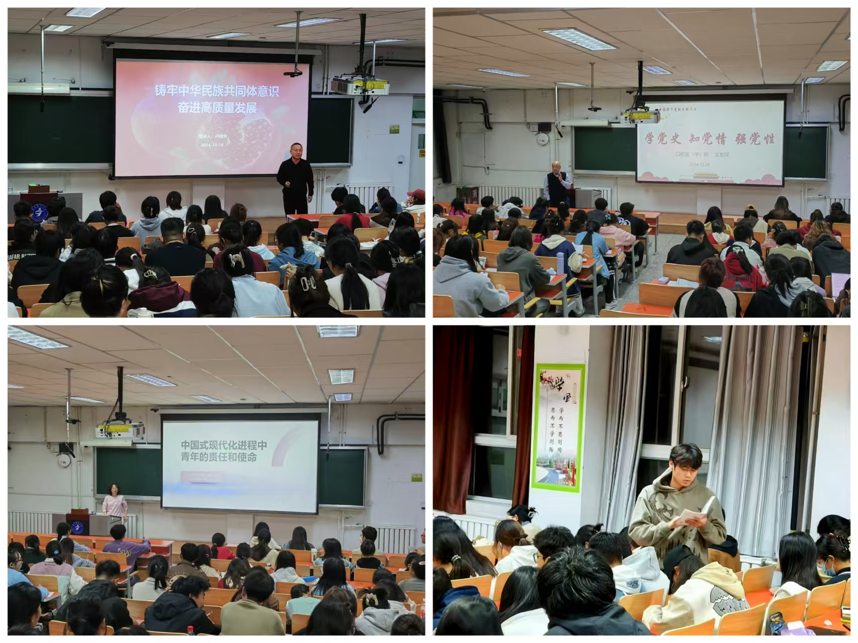 口腔医学院党委副书记王云、副院长文友民,检验学院专职组织员卢晓华分别以《中国式现代化进程中青年的责任和使命》、《学党史知党情强党性》和《铸牢中华民族共同体意识,奋力推进高质量发展》为题进行讲授。