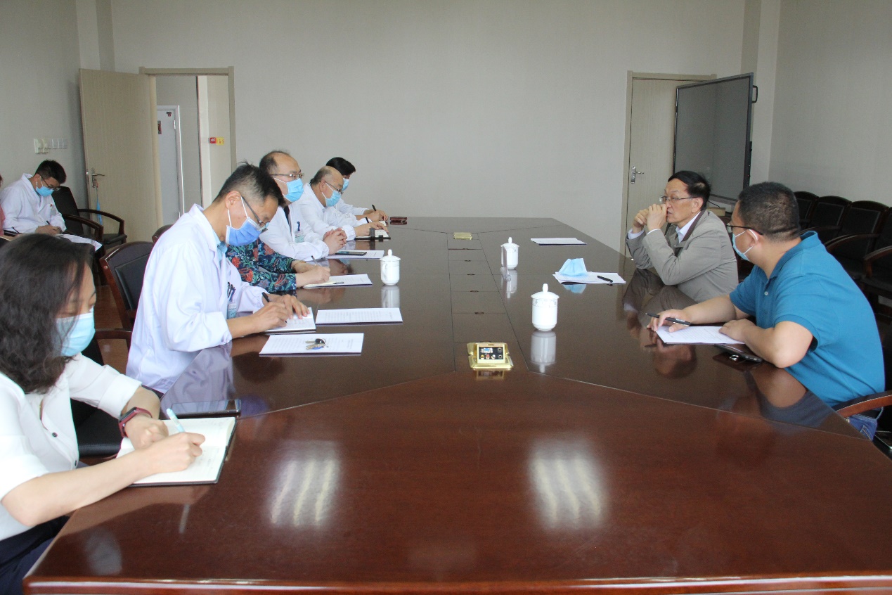 参观结束,与口腔医(学)院党政班子成员及相关科室负责人进行了座谈。口腔医(学)院院长黄永清代表党政班子从院院合一推进情况、学科和学位点建设,疫情期间线上教学、学生培养、后勤保障等方面的工作进行了简单汇报,重点对两院发展过程中存在的问题及工作思路做了详细说明。
