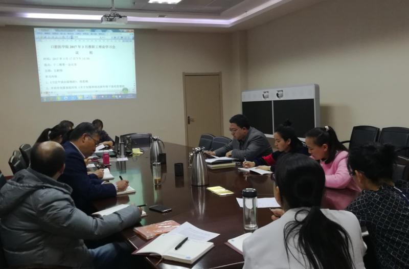 3月17日下午,口腔医学院召开2017年3月职工政治理论会,全院党员、教职工参加了会议,会议由党委书记王新刚主持。