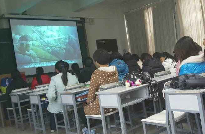 同学们认真观看一二九视频资料
