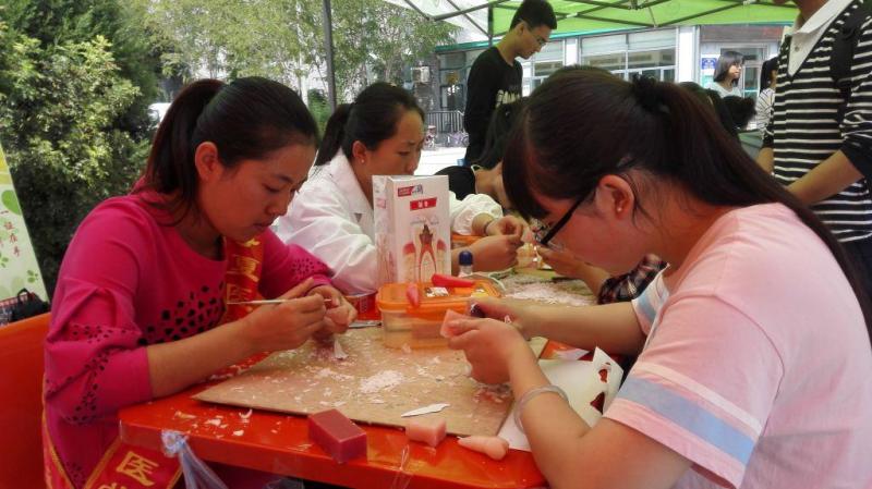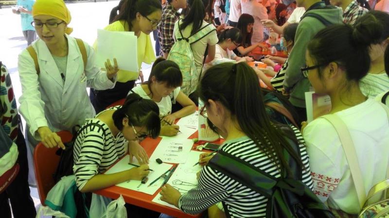 在今年的活动现场,我们针对口腔专业特点设置了口腔义诊区、口腔保健宣教区、雕牙画牙体验区、口腔模型展示区和学生作品展览区。在义诊环节中,学院还精心设计了针对口腔病人基础需求的实名制诊疗建议卡,为每一位参与诊疗的师生出具了初步诊断方案和诊疗建议,并在显著位置详实通过微信公众平台、百度地图等新媒体手段做好导医服务,让流动性、短时间的义诊活动真正满足了师生口腔保健需求;同时,为了凸显今年爱牙日主题,增强师生关注口腔的意识,学院在义诊现场开设了口腔科普展示、雕牙画牙、医疗基础知识有奖竞猜和普法宣传等活动,让爱牙日活动更加贴近生活和需要。