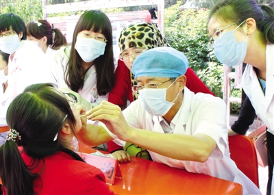 活动现场,黄永清教授一边为就诊的同学义诊,一边为旁边高年级的口腔专业同学实地讲解,同学们在实践中不断学习书本中没有的知识。在讲解同学详细的讲解口腔保健知识后,有奖问答区被回答问题的同学们围的水泄不通,从如何刷牙到口腔保健知识,时不时的引来一阵笑声,同学们认真作答,回答问题的同学就可以得到一份礼品。同学们都说这次活动很不错,尤其是有奖竞答环节,了解到不少口腔保健知识。