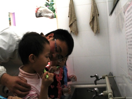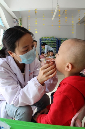 经过简单的布置和设施准备,来自我院2010级口腔本科的同学们,分成12个小组,认真为小朋友们检查牙齿,细心记录检查结果。检查结束后,配合牙齿模具演示,通过发放一次性儿童牙刷,帮助小朋友们学习正确的刷牙方法。