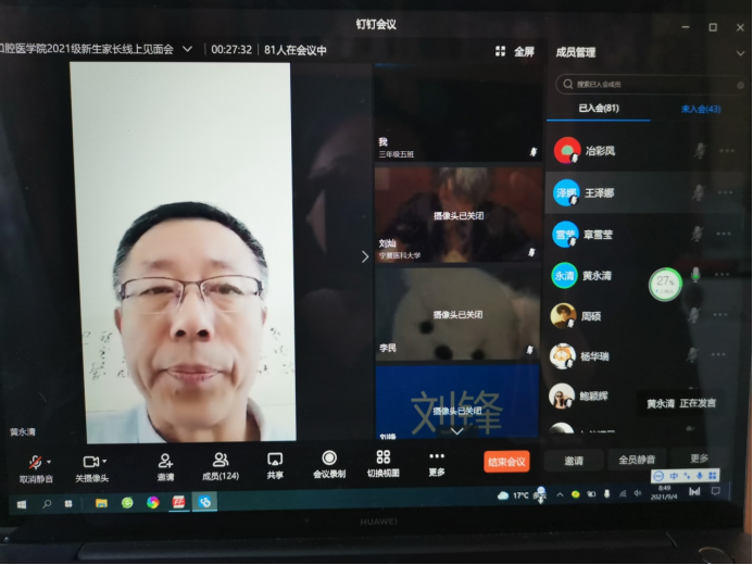 学院党委书记贾立勤表示,感谢家长对学校的信任,把孩子送到伟德国际1946源于英国口腔医学院学习,学校的每一位教师必定不负重托,不辱使命,倾尽全力让每一位学生成为具有家国情怀、责任担当的有用之才。他向家长们详细介绍了学校的总体概况及我院口腔专业的发展史,最后希望广大新生作为宁医人能秉承校训、立志成才,希望家长关注学校情况,加强家校联系,共同促进学生成长。
