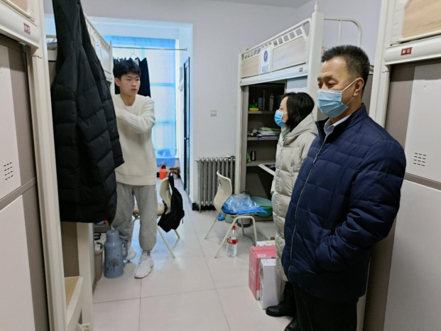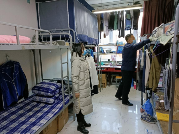 在巡查过程中,老师们仔细查看了学生宿舍消防安全、水电使用安全、生活设施、清洁卫生等方面的情况,并且反复叮嘱学生要做好疫情防护,保持良好的宿舍卫生,禁止使用大功率用电器和违规刀具,线路要规整,防止出现火灾,进一步提高安全防范意识,谨防人身和财产安全。同时,向同学们送去了节日的祝福,预祝同学们在期末考试中取得好成绩。