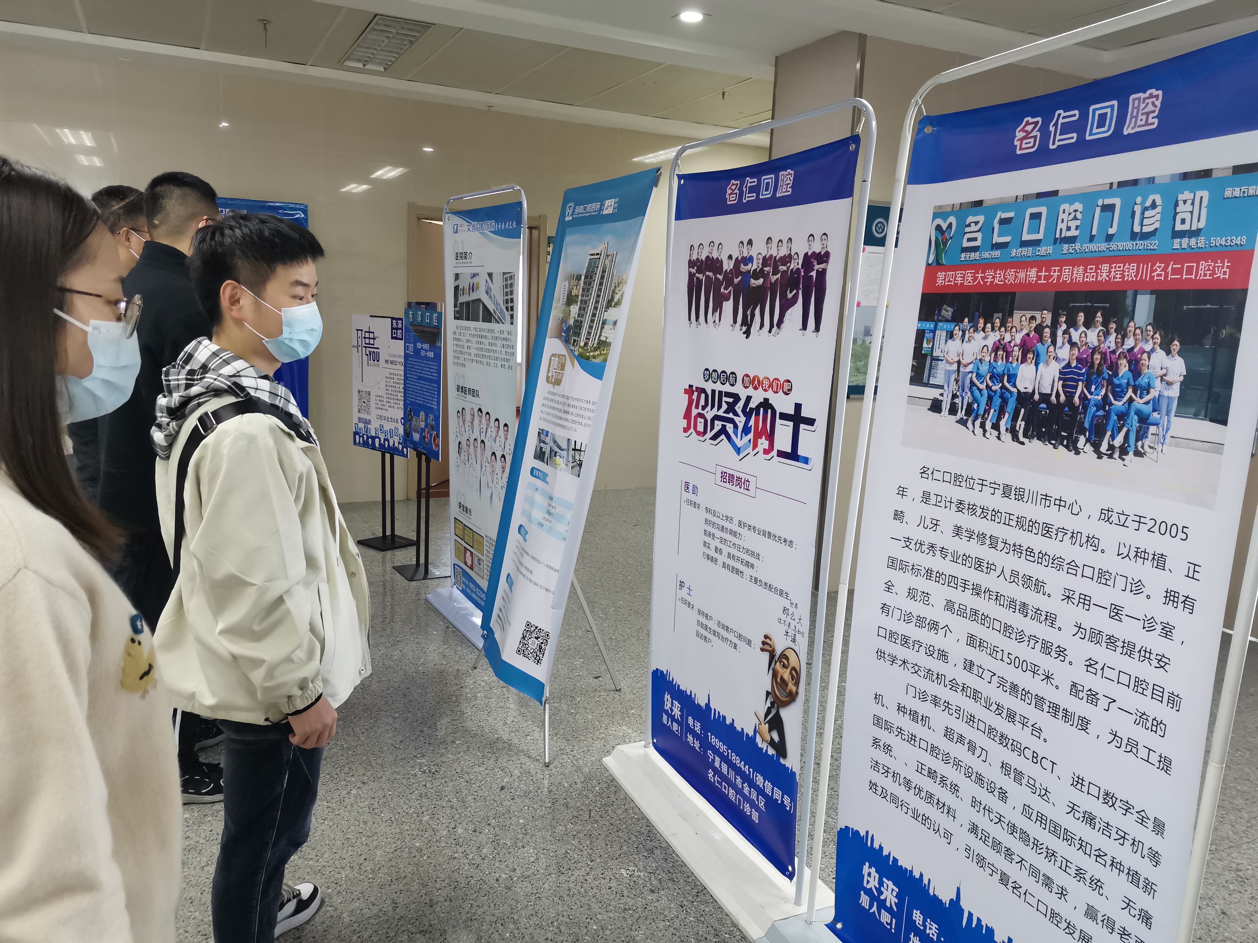 本次专场招聘会邀请到了海南口腔医院、康美口腔医疗集团、诺贝尔口腔门诊部、艾齿口腔医院、吴忠东滨口腔诊所、中山口腔诊所、名仁口腔诊所、贺兰县李伟杰口腔门诊部、鸣悦口腔门诊部等9家用人单位共提供岗位135个。
