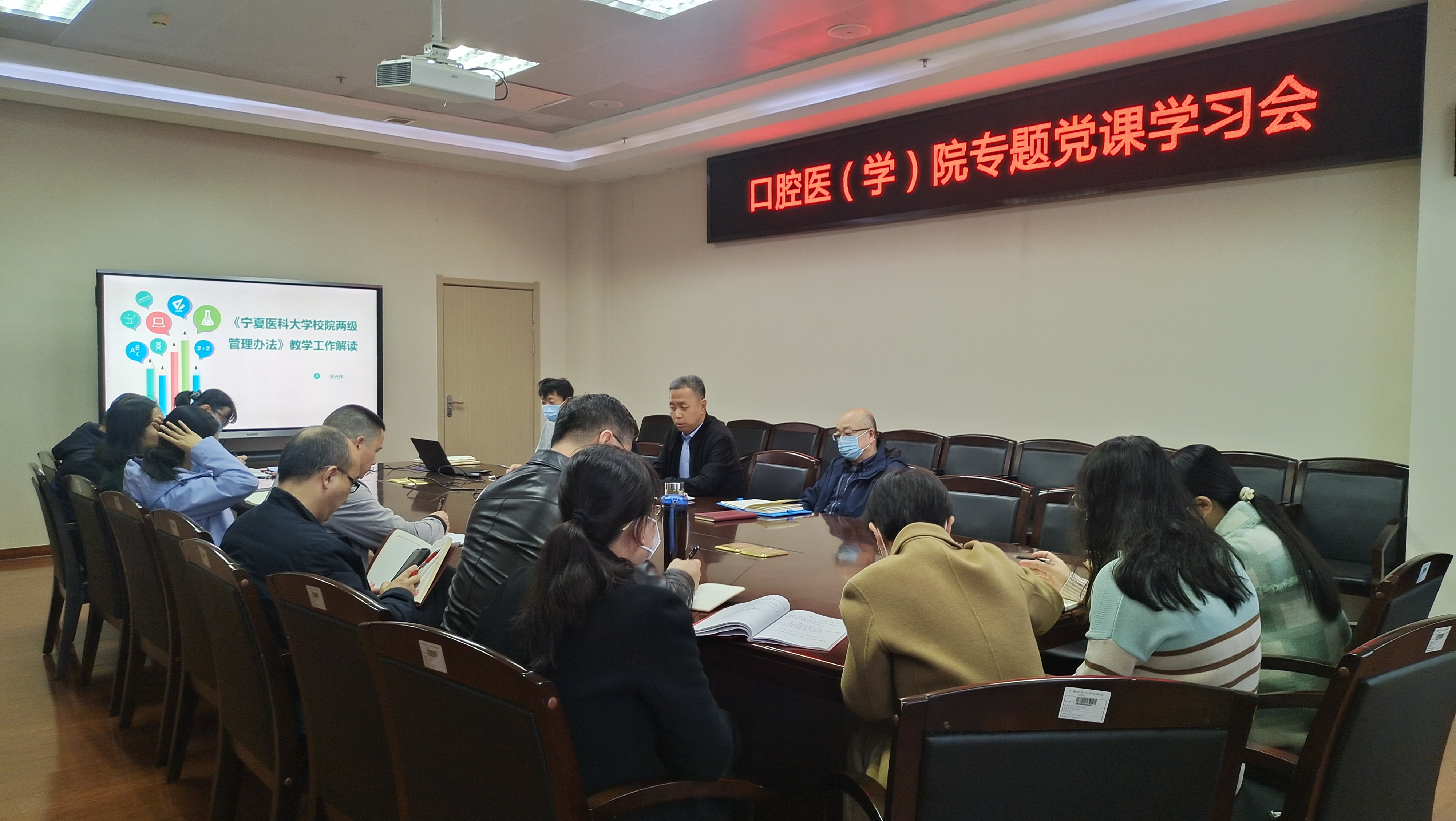 为扎实推进学校廉洁文化建设月活动,2023年4月4日上午,口腔医学院党委书记贾立勤以《深刻领悟“三个务必”提出的重要意义及其深刻内涵》为题,为学院领导班子成员及全体教职工讲授了专题党课。