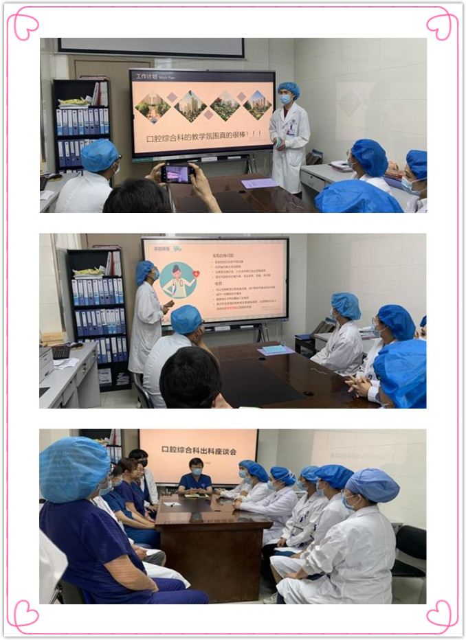 口腔综合科是口腔全科住院医师规范化培训基地,承担本、专科、住培医师的后期临床操作教学工作,也多次获得先进科室、青年文明号等荣誉。近年来,在朱琳虹主任带领下,教学组全体教师在后期临床教学模式改革中不断探索、创新,为进入口腔综合科的医学生、年轻医师们建立良好的学习、实践环境,共享理论知识与临床经验,旨在培养更多从容、自信、专业技术过硬的口腔医生。