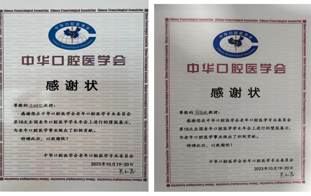 2023年10月20日,中华口腔医学会老年口腔医学专业委员会第18次全国老年口腔医学学术年会在辽宁沈阳盛大召开,由我院全科基地主任朱琳虹指导、2021级住培医师冯佳迪精心准备的《老年患者服用双膦酸盐拔牙风险评估一例》入选并进行壁报交流。