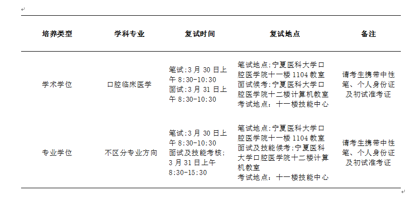 复试形式为笔试、面试和技能测试。技能测试仅面向专硕考生。笔试考试时间为120分钟,符合复试基本要求的同等学力考生,还须加试《口腔解剖生理学》及《口腔组织病理学》。