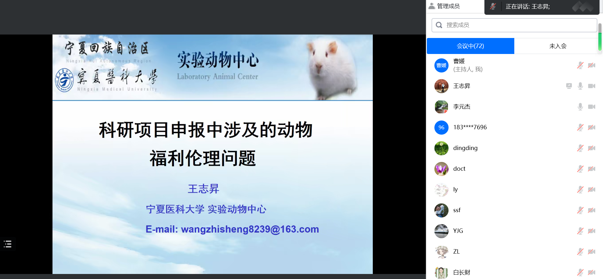 为深入学习医学科学研究中的伦理问题,作好2023年国家自然科学基金项目的申报工作,了解我国科学研究中实验动物福利伦理的基本情况和动物伦理审查的内容及必要性。2月26日下午,科技处邀请学校实验动物中心王志昇博士通过线上腾讯会议的形式为广大科技工作者以“科研项目申报中涉及的动物福利伦理问题”为题作讲座,学校医学伦理审查委员会委员、2023年国家自然科学基金项目申请人共100余位教师参加会议。会议由科技处副处长李元杰主持。