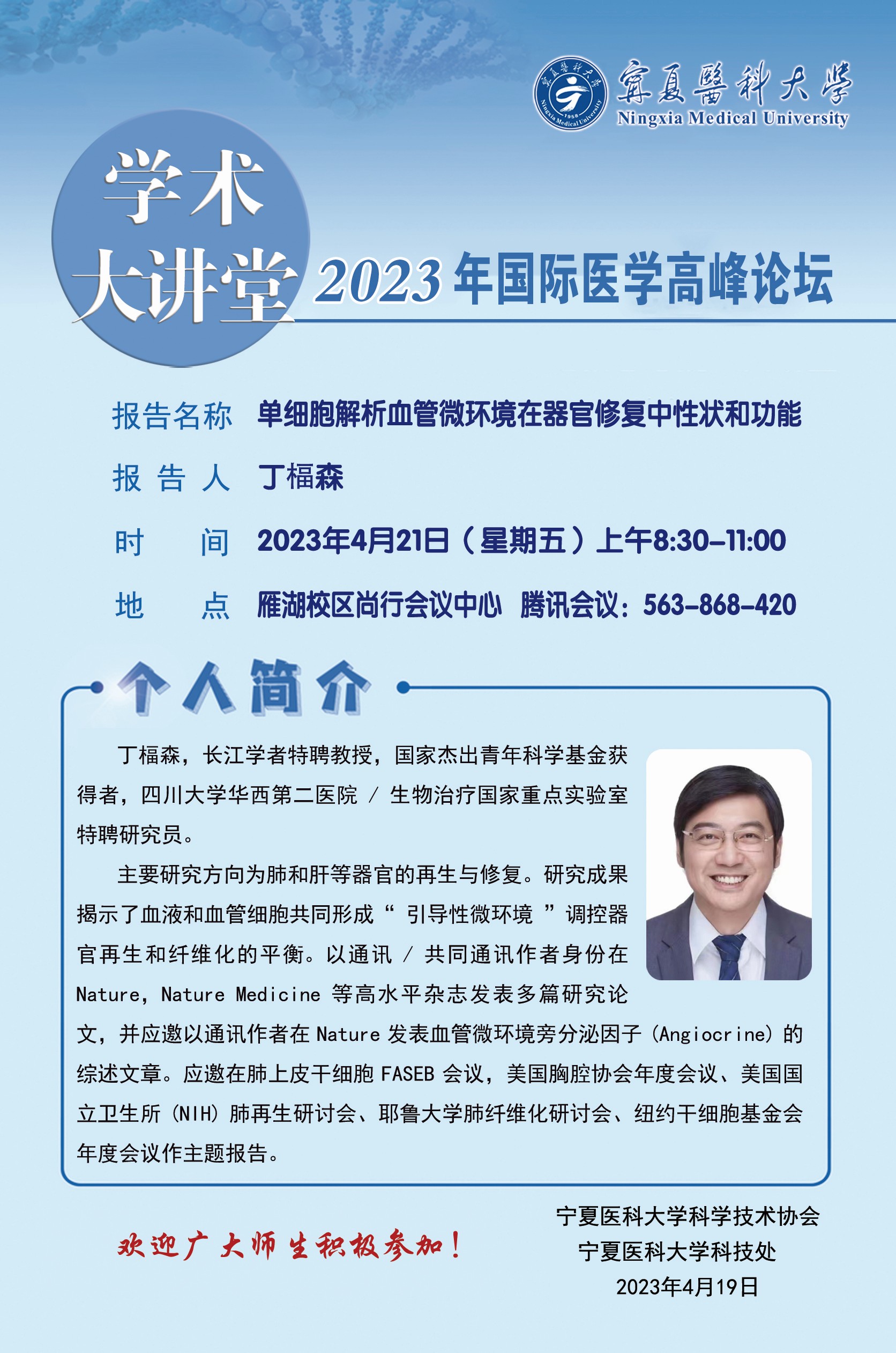 伟德国际1946源于英国2023年国际医学高峰论坛学术讲座系列活动之丁楅森教授大讲堂