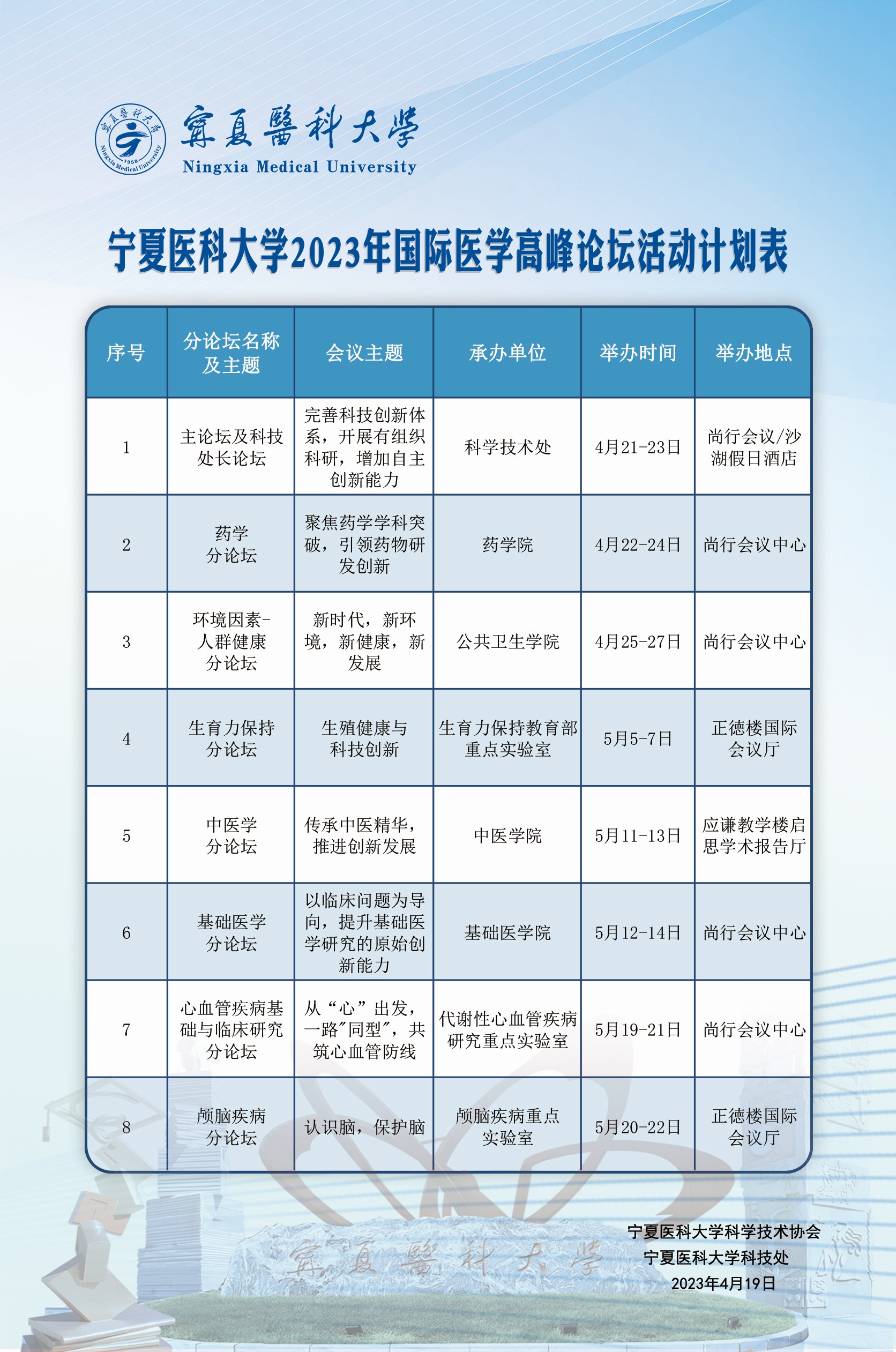 伟德国际1946源于英国2023年国际医学高峰论坛活动计划表