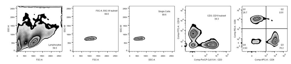 分析参数:10色荧光、前向散射光、侧向散射光;