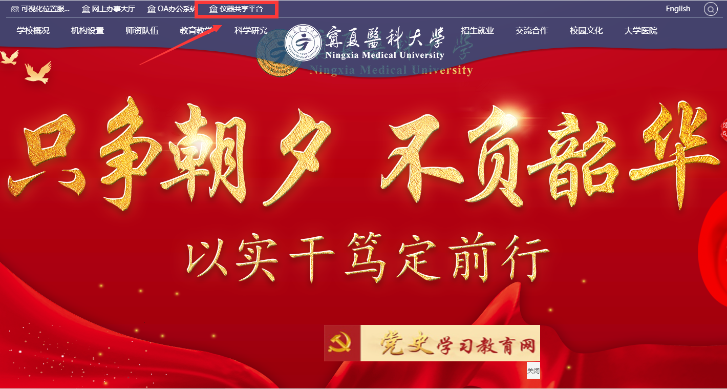 第一步 打开系统:请用谷歌浏览器输入网址:http:/,进入学校官网主页,请点击左上角仪器共享平台进入大型仪器共享管理平台首页。
