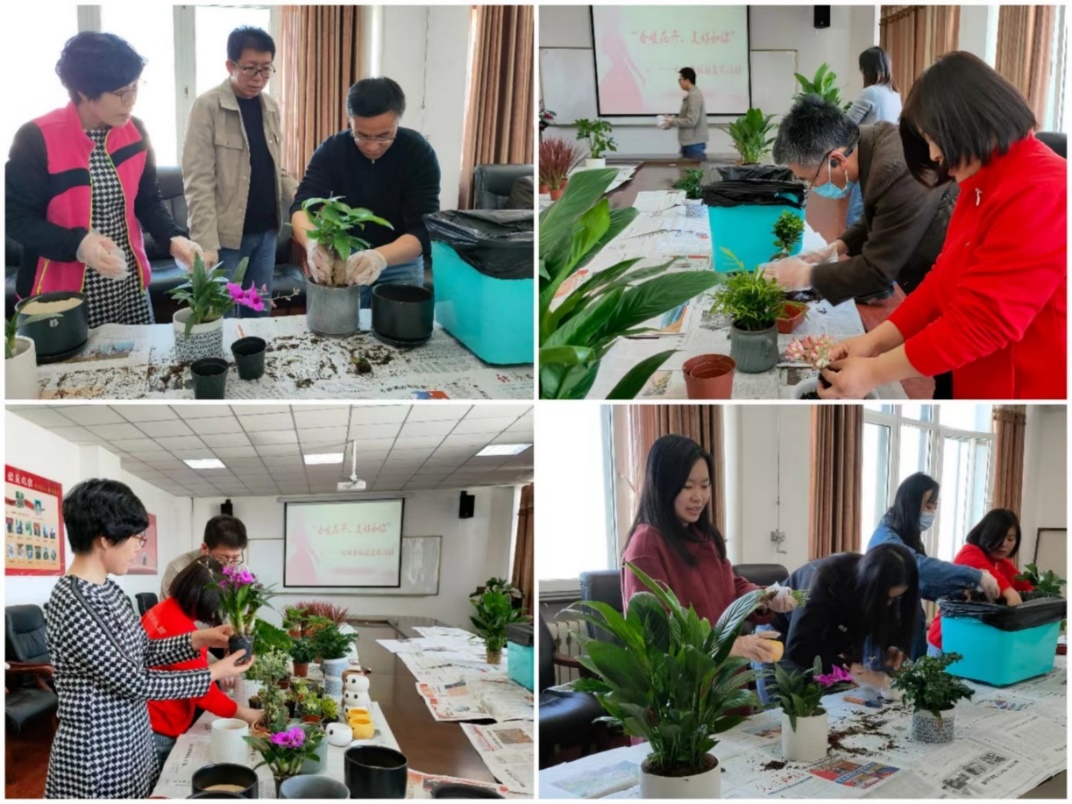 迟日江山丽,春风花草香。为庆祝第113个“三八”国际劳动妇女节,营造健康、和谐、积极向上的节日氛围,丰富女职工的精神文化生活,2023年3月8日,颅脑疾病重点实验室分工会响应学校工会开展“春暖花开,美好如你”妇女节绿植盆栽活动。