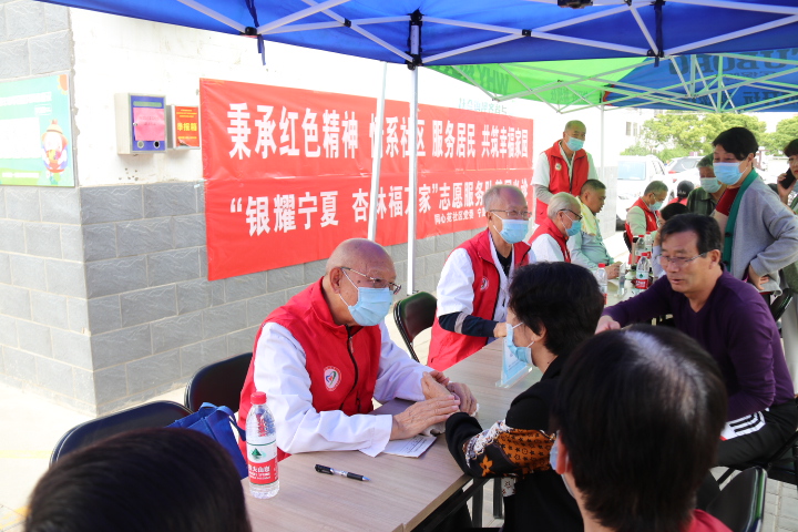 志愿服务现场,伟德国际1946源于英国“银耀宁夏 杏林福万家”志愿服务队6名老专家向社区居民开展诊疗、健康咨询、心理咨询、中医推拿等服务。