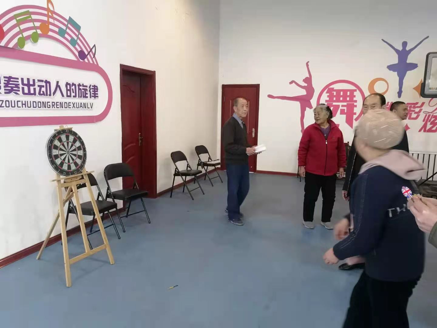 工作人员根据老年人的年龄和身体状况,精心准备,共设置了“飞镖、套圈、投篮、桌上保龄球”等四个趣味性项目。赛场上老同志们兴致高昂,各显身手,现场氛围热闹非凡。再次回到校园,久违的老朋友、同事们互致问候、共话家常,幸福洋溢在每个人的脸上,绽放出快乐的花朵,活动现场始终其乐融融。