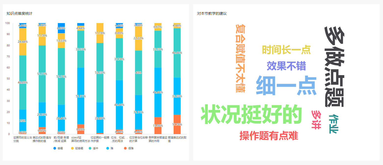 2.问卷知识点掌握情况。为了获得学生对于知识点的掌握情况,以调整教学内容,在每节课结束后,都采用在线问卷形式调查学生对于本节每个知识点的学习情况。教师是无法通过考试、测验等获得学生学习中的主观感受的,而了解学生的主观感受对于教学可以起到很好的帮助。通过合理、全面且及时的问卷设计,可以反映出学生对于哪些知识点掌握较好,哪些知识点没有理解,也折射出了在教学设计中,教学重难点的设置是否合理、教学方法的使用是否得当等情况的掌握,可在下节课前及时反馈学生并加以复习。