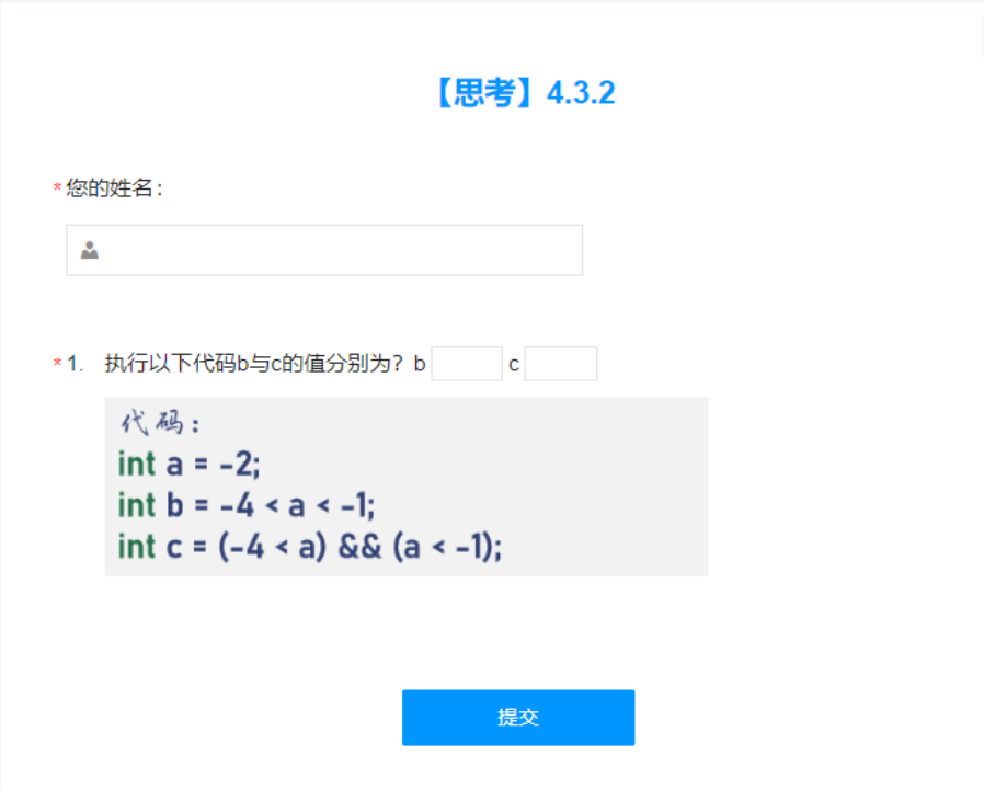 1.在线问答平台辅助。由于在线教学工具和网络条件的限制,授课教师无法像线下授课一样随时对任意一位同学进行提问。虽然各种在线教学工具中都提供了教师与学生视频通话、语音通话的功能,但这些功能往往无法保证师生的快速、流畅通信,会占用较多的课堂时间,严重拖慢课堂进度。通过引入在线问答平台,比如问卷星小程序、学习通App等,可以与学生开展高效的课堂问答。在教学当中,以在线测验或者问卷的形式,配合课堂进度发布相应问题,学生在规定的时间内独立思考并完成在线回答,教师可以在平台中即时查看所有学生的答题情况的统计分析结果,并根据统计结果做出有针对性的讲解。不仅提高了答题效率、保证了学生参与度,对学生的学习情况也能更精准把控。
