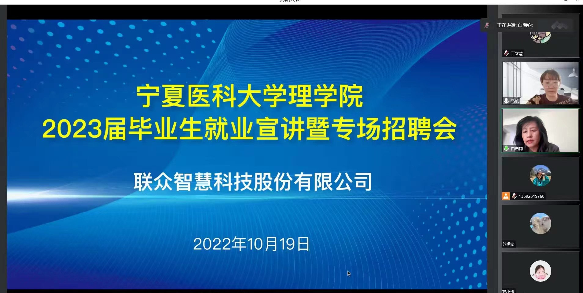 为做好疫情防控下的就业工作,最大限度降低疫情对毕业生就业的影响,切实保障毕业生稳定就业,10月19日下午,理学院采用线上线下相结合的方式邀请联众智慧科技股份有限公司举办了2023届毕业生就业宣讲暨首场招聘会。本次会议由学院党总支书记白启钧主持,学院党总支副书记代良兵、辅导员及2023届全体学生参加了本次招聘会。