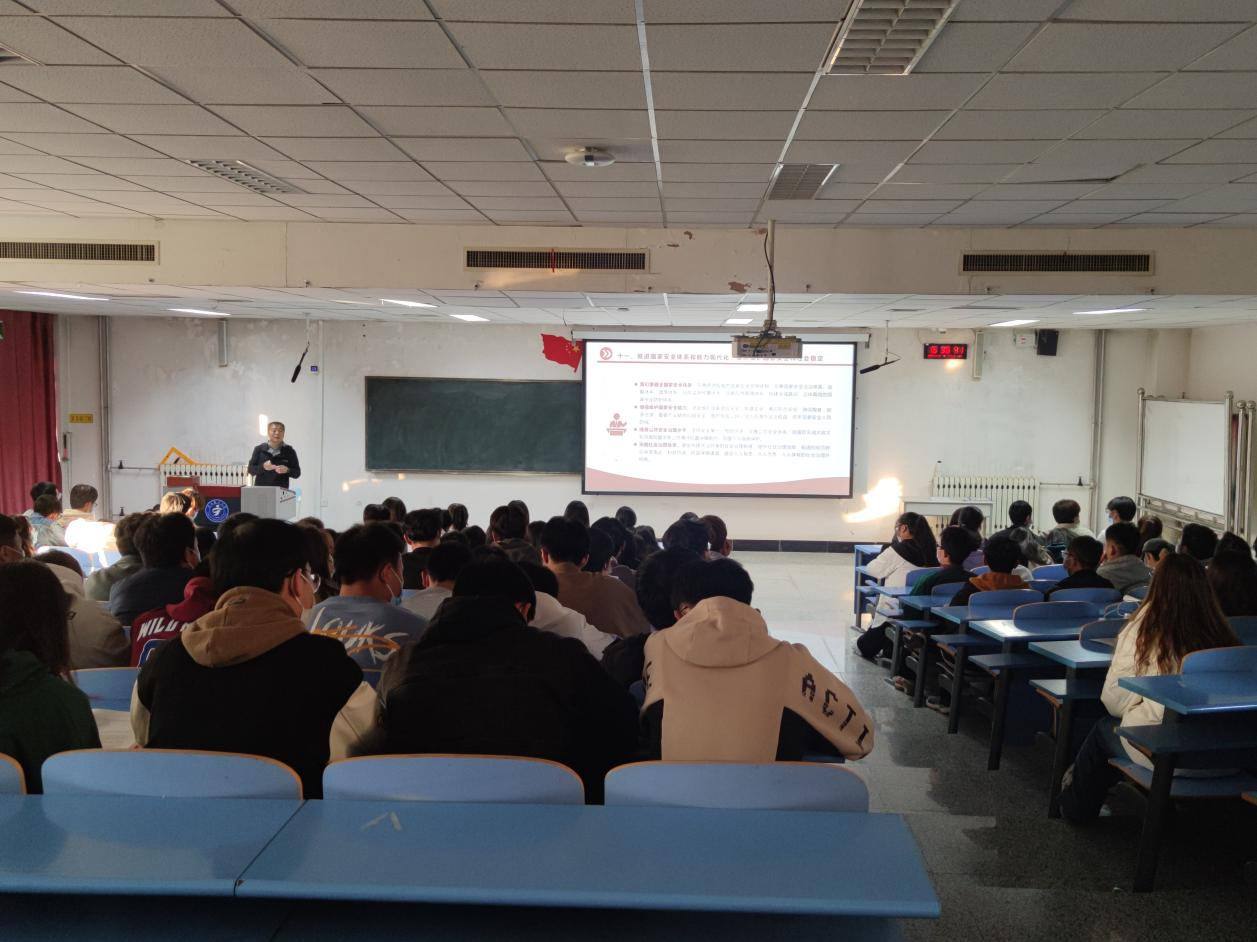 谢波书记围绕党的二十大报告全文,从党的二十大报告主题进行讲解:高举中国特色社会主义伟大旗帜,全面贯彻新时代中国特色社会主义思想,弘扬伟大建党精神,自信自强、守正创新,踔厉奋发、勇毅前行,为全面建设社会主义现代化国家、全面推进中华民族伟大复兴而团结奋斗。谢书记理论联系实际讲到,在疫情期间,学校的各类疫情防控措施以及学校教职工为疫情所做出的贡献,正是体现了贯彻落实党的二十大精神。他从自身出发,生动形象的讲解在疫情防控中遇到违规违纪同学的案例,由此提醒各位同学要遵守校纪校规,提高自我防范意识。谢波书记带领同学们学习了新时代新征程中国共产党的使命任务,希望各位同学争做有理想、敢担当、能吃苦、肯奋斗的新时代好青年,也希望各位同学能将自己所学习的专业知识融入到疫情防控的措施中,真正做到学有所用。