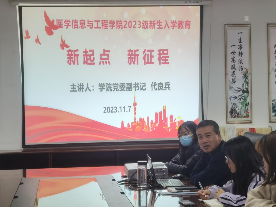 11月7日下午,在厚生楼428会议室,学院党委副书记代良兵结合学校“到学生中去”“七进一交友”的相关文件要求,为2023级新生开展入学教育第二讲。