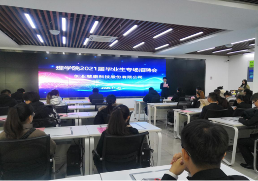 为进一步做好我院毕业生就业服务工作,解决2021届毕业生就业问题,搭建用人单位与求职者双向交流平台,理学院于11月25日下午在创新创业园举办了第二场“理学院2021届毕业生专场招聘会”。参加此次活动的有创业慧康科技股份有限公司、宁夏灵动网络技术有限公司、宁夏泽新信息技术服务有限公司、学院领导、辅导员以及理学院2017级全体学生。