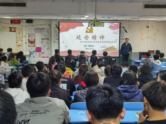 为庆祝建党100周年上好党史教育和思想政治课,3月12日下午在厚生楼201教室,谢波书记为理学院全体同学做“延安精神”党史学习教育暨“开学第一课”。