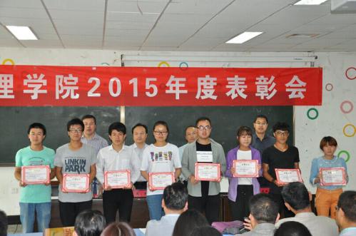 会上对学院2015年评选出的先进教研室、先进工作者、三好学生、优秀学生干部、优秀志愿者、积极申报自然科学基金的个人以及在全国和宁夏大学生数学建模竞赛中获奖的学生进行了表彰和奖励。