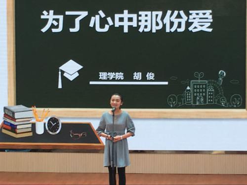 11月9日,学校举行了“弘扬长征精神 争做四有教师”师德演讲比赛。我院教师胡俊代表理学院参加了比赛。她以题为“为了心中那份爱”的演讲得到了95.92分的全场最高分,在此次比赛中获得一等奖。