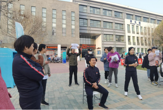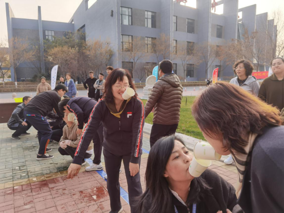 迎新联谊拓展活动设有“杯水传情”、“乒乓球接力”、“你画我猜”、“背对背拥抱”四个游戏环节,集趣味性和竞技性于一体,参赛的老师和同学们展开了激烈的角逐,大家秉承“友谊第一,比赛第二”精神,队员之间展现出了极高的默契和团结精神,拉拉队的呐喊声、加油声此起彼伏。滚烫的汗水挡不住内心的激情澎湃,赛场上彰显着全体师生的英雄本色。最后,伴着《我和我的祖国》这不朽的旋律,师生联谊活动圆满结束。