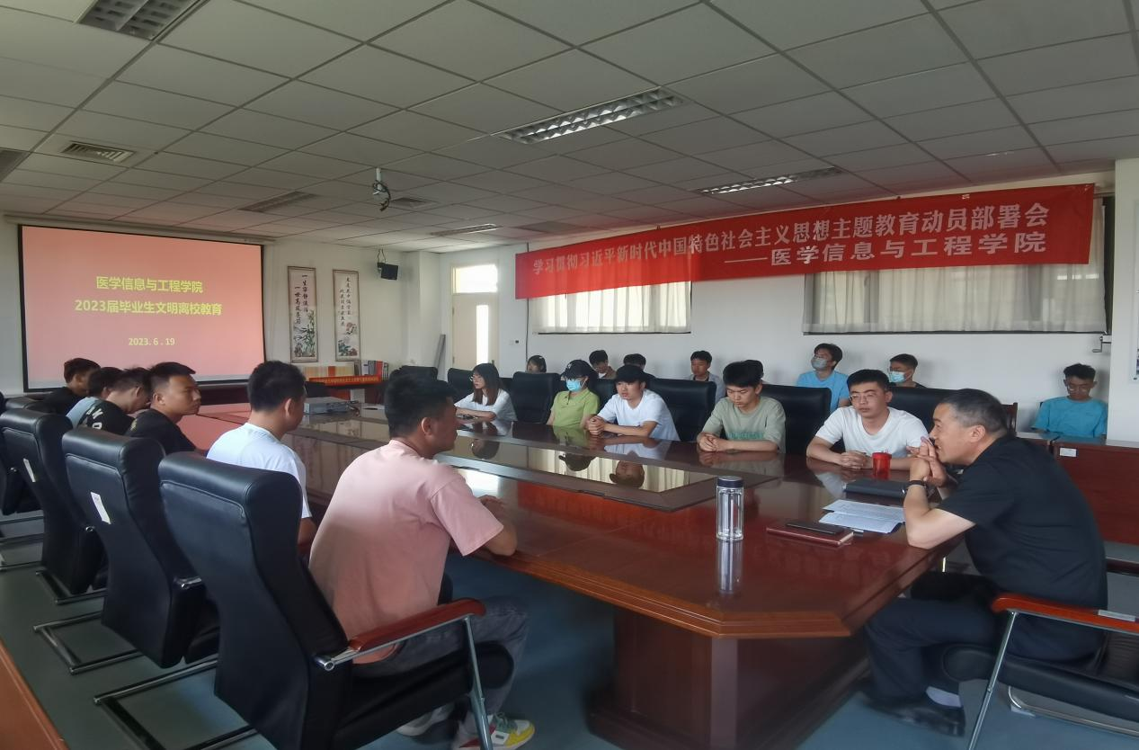 为扎实做好2023届毕业生离校前的各项工作,医学信息与工程6月19日早晨在厚生楼428会议室开展毕业生文明离校和安全教育,2019级全体本科生参加,学院党委副书记代良兵主持。