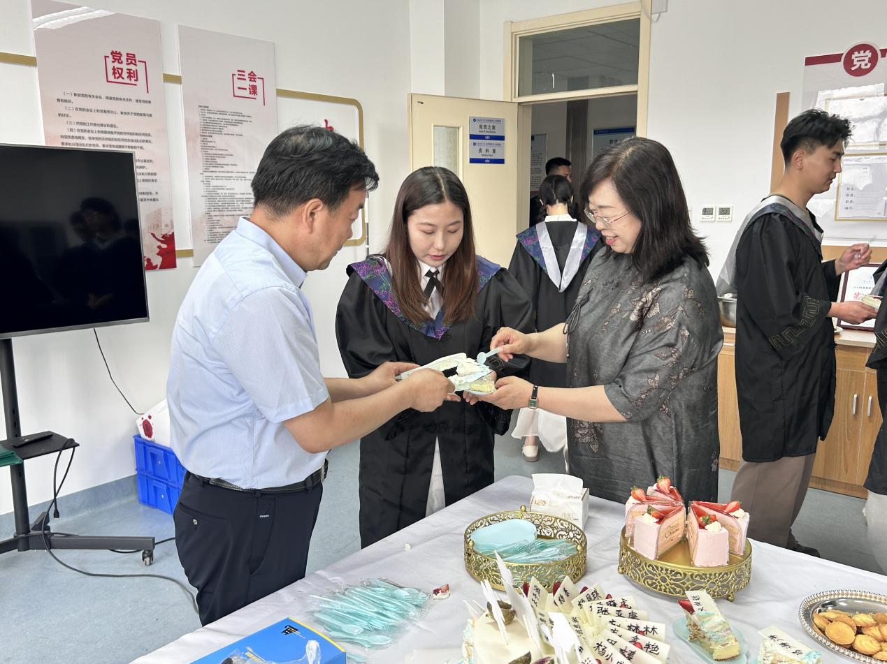 班长以精彩的开场致辞拉开了座谈会的序幕,现场展示了精心制作的2024 届毕业视频,回顾了同学们在校园中的点滴成长与难忘瞬间。王子涵、马雄、胡婉琳三位毕业生代表分享了自己校园生活中的难忘经历和奋斗经验。教师代表分别寄语,给予毕业生前行的力量和智慧的指引。孙玉宁院长深情寄语,表达了对毕业生们未来的美好期许和祝愿。为毕业生赠送纪念礼物环节,更是让现场充满了温暖与感动。