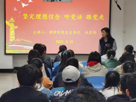 党课第二讲由理学院党总支书记白启钧主讲,她以“坚定理想信念,听党话,跟党走”为主题。讲座以《在灿烂阳光下》这首红歌拉开序幕,白书记站在学员中间,亲切带领大家一起唱完歌曲,白书记不仅深刻为大家讲述“红船精神”的内涵,也同时告诫大家生逢其时,为之奋斗,争做社会主义的建设者和接班人。