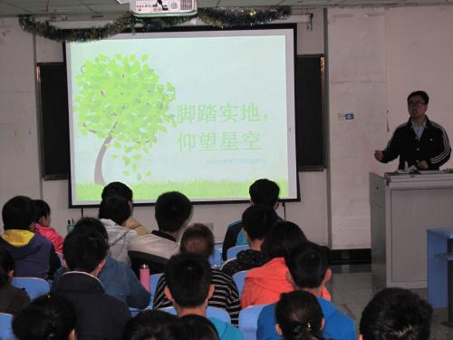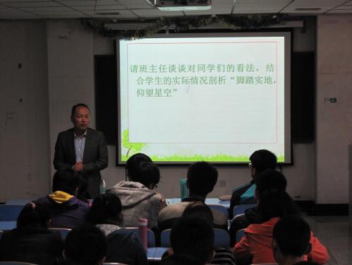 4月13日,理学院2014级电子信息团支部在厚生楼201教室举办以“脚踏实地,仰望星空”为主题的班会,联系班级领导刘东书记和全体学生参加班会活动。