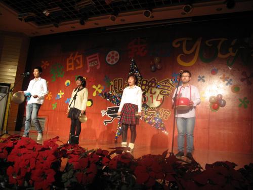 动感的开场舞《小苹果》拉开整场晚会的序幕,大家欢聚一堂共享视觉盛宴,既有搞笑的双簧《傻子卖鸡蛋》又有柔美的舞蹈《宫商角徵羽》;一段三句半道出了新生“我的校园”之感受;动听的吉他弹唱《EVERBOBY HURTS》和歌曲串烧《我们的歌》让大家沉浸在美妙的音乐中;诙谐搞笑的话剧《唐僧的爱情故事》让大家都记住了那个漂亮的“小师妹”;还有感怀青春的情景剧《青春纪念册》和煽动全场的互动环节,代书记的一首《精忠报国》将晚会推向了高潮,现场传来观众们阵阵掌声和欢呼声。除了现场节目的火爆给观众留下深刻印象之外,还有别具一格的QQ群评论上墙活动,让大家可以及时分享现场趣味照片和自己观看节目的心情。