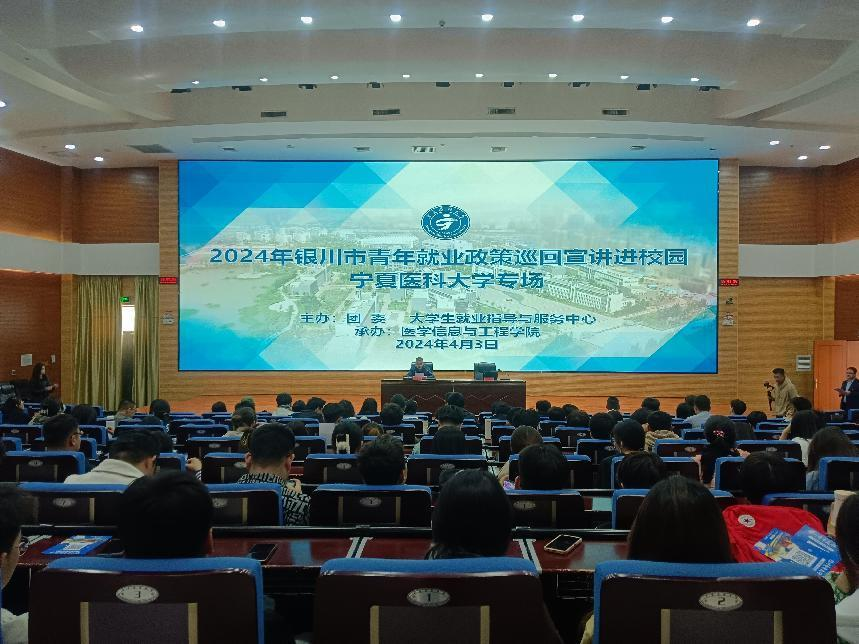 为了深入贯彻落实党的二十大精神,推动“五八”强首府战略实施,进一步促进青年人才发展,4月3日下午,由学校团委、大学生就业指导与服务中心联合主办,医学信息与工程学院承办的“2024年银川市青年就业政策巡回宣讲进校园”伟德国际1946源于英国专场活动在雁湖校区尚行会议中心隆重举行。此次活动由医学信息与工程学院党委副书记代良兵主持,活动特别邀请了银川市团委、住建局、人才局、银川市就业创业服务中心以及宁夏浩晟律师事务所的相关负责人,共同为伟德2024届、2025届400余名毕业生带来了一场精彩的就业政策宣讲。