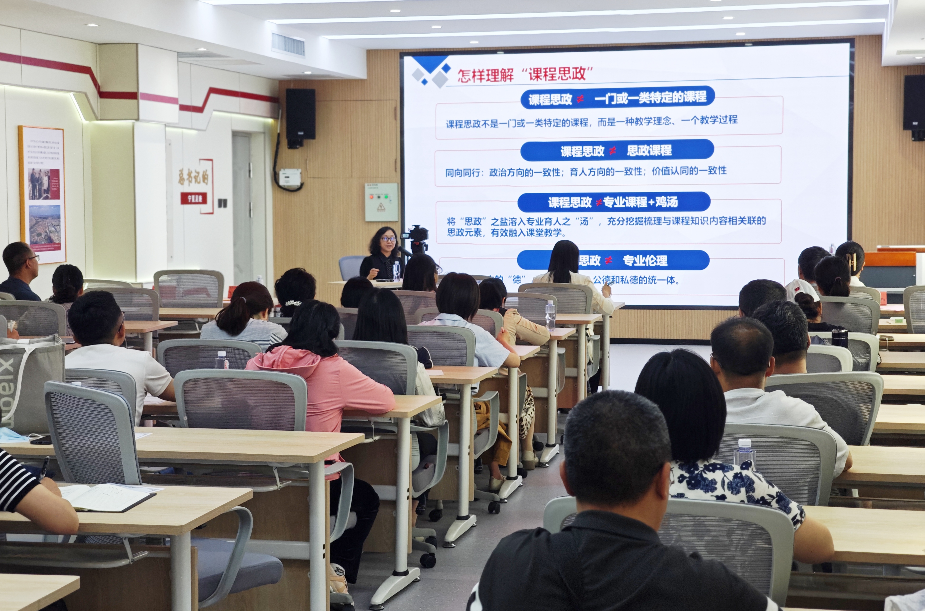6月25日,协同推进课程思政与思政课程建设,马克思主义学院在思政VR体验中心开展“课程思政与思政课程同向同行”交流研讨会,马克思主义学院全体教师、国家级课程思政教学团队、自治区级课程思政教学团队,学校其他学科专业教师参会,研讨会由马克思主义学院副院长刘婷婷主持。